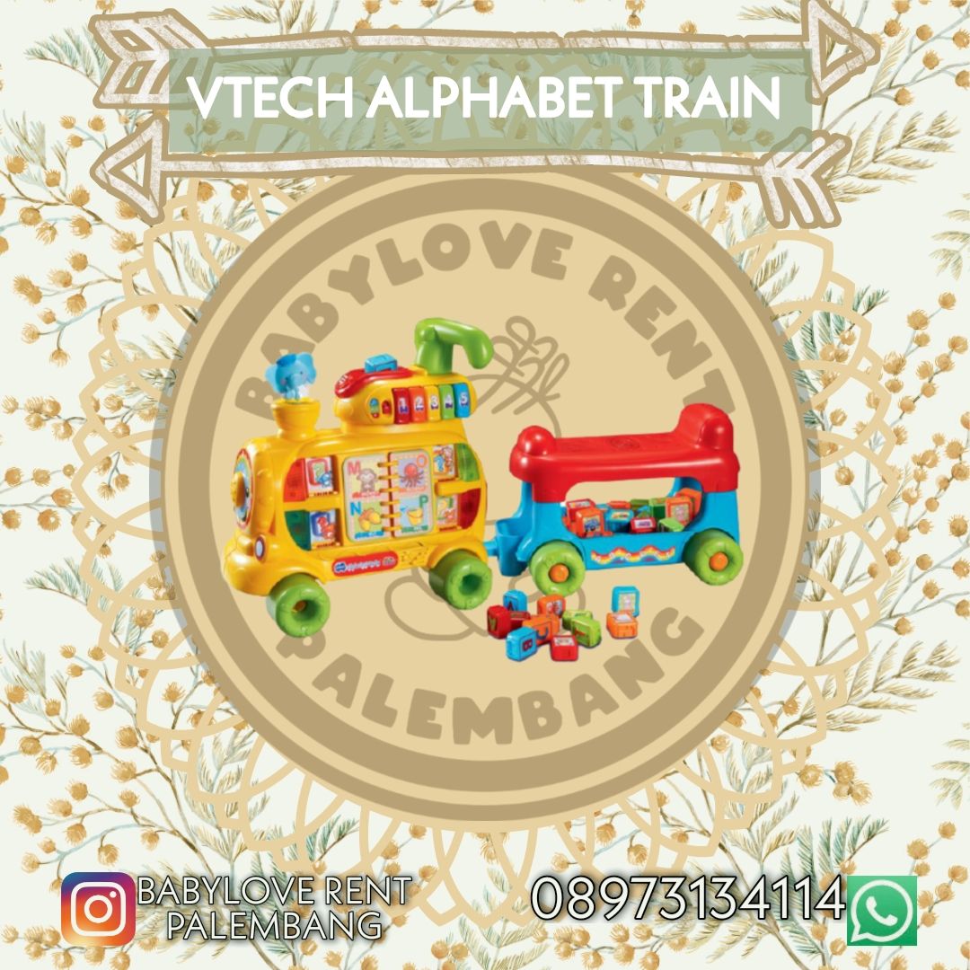 -Ride-on toy train playset has motion sensors that activate sound when moving; 13 double-sided letter blocks and a non-rip water resistant alphabet book included