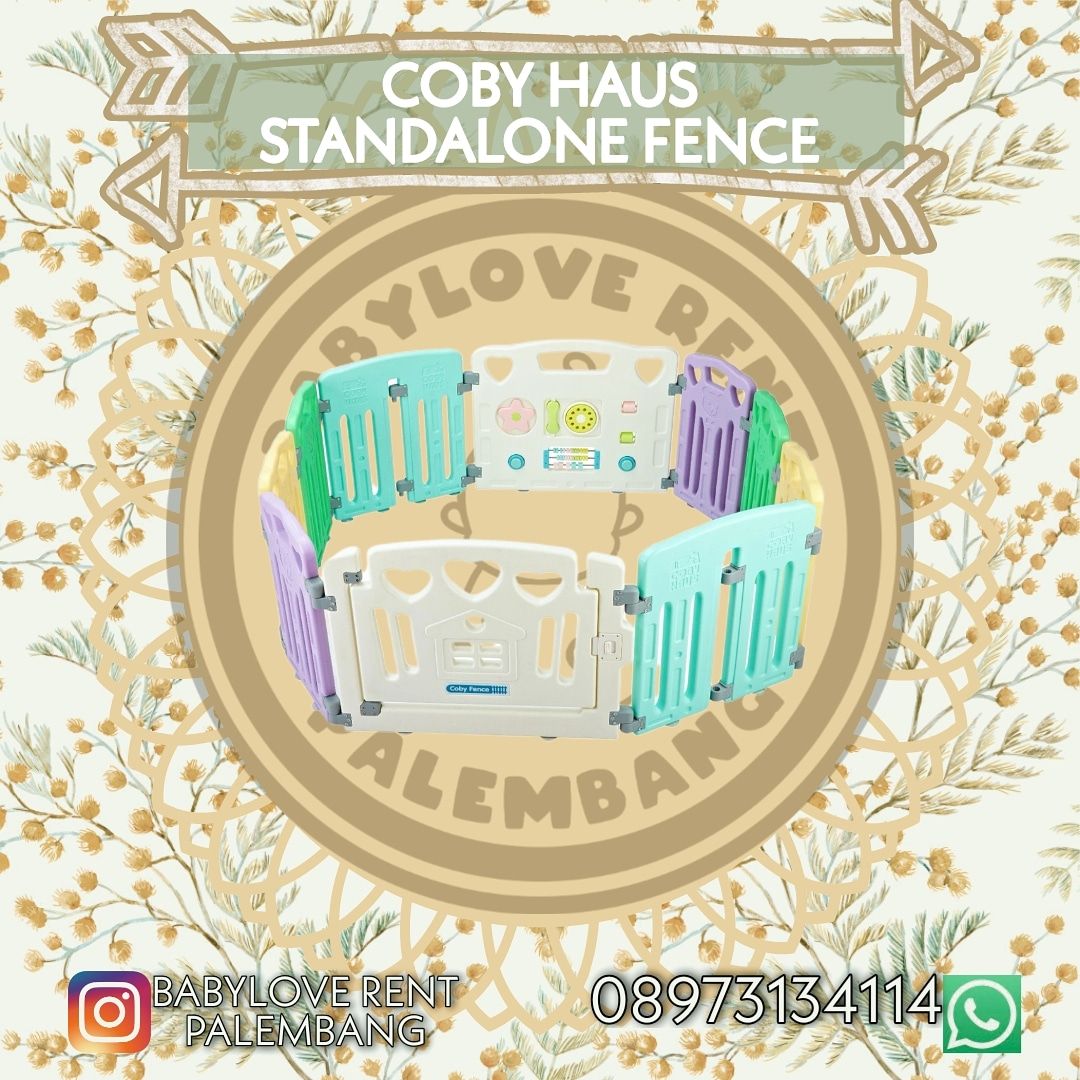 Pagar bayi ukuran 120x160 cm. Terdiri dari 6 panel kecil, 2 panel standalone, dan 2 panel pintu+mainan.